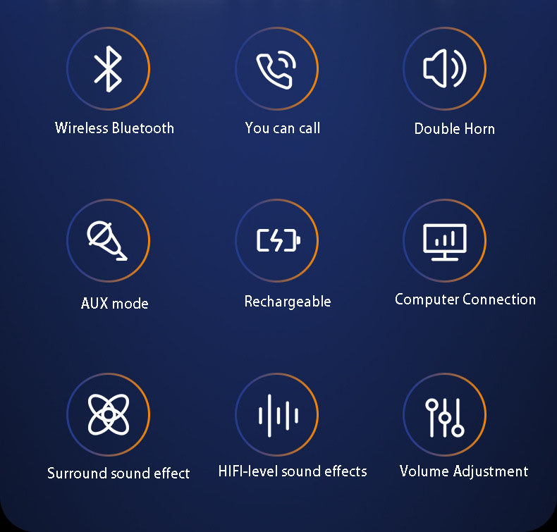 This is a multifunctional wireless Bluetooth speaker, featuring high-quality ABS and unique design, Bluetooth playback, USB flash drive, TF card, AUX, FM, dual channel Suitable for various occasions, such as birthday parties, computer games, camping, work, school and family gatherings, etc.