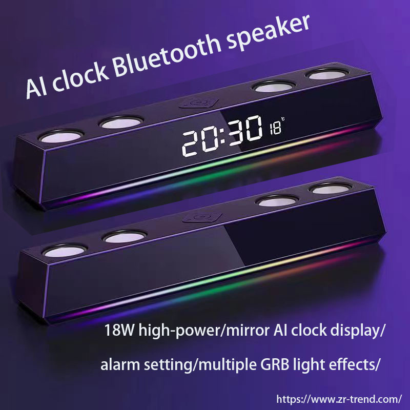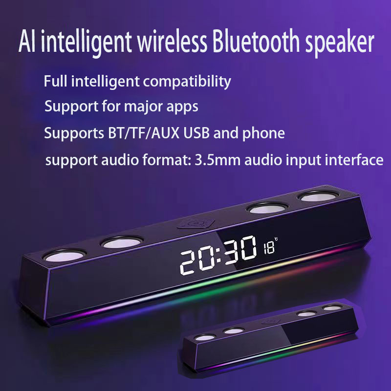 New AI Intelligent Alarm Clock Bluetooth Speaker 18W RGB LED Night Light with 3.5mm Audio Input Interface Party Battery(A4)