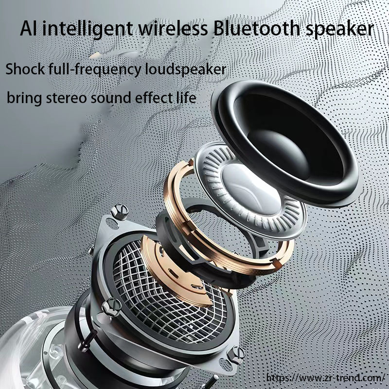 16- ●AI intelligent Bluetooth speaker,● Supports BT, TF, AUX USB and Phone,● Support audio formats: 3.5mm ●audio input interface, MP3, etc,●Signal to noise ratio: ≥ 70dB,●Separation degree: ≥ 60dB,●Charging type: DC 5V/1A-2A,●Light control: equipped with RGB flash,●Frequency response range: 100HZ-20KHZ,●Effective distance: 10m,●Material: ABS,●Rated power: 18w,●Low frequency power: 12W,●High pitched power: 6w