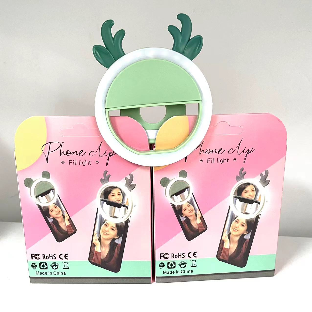Hot selling cartoon lens phone clip fill light USB charging LED camera artifact live selfie beauty light
