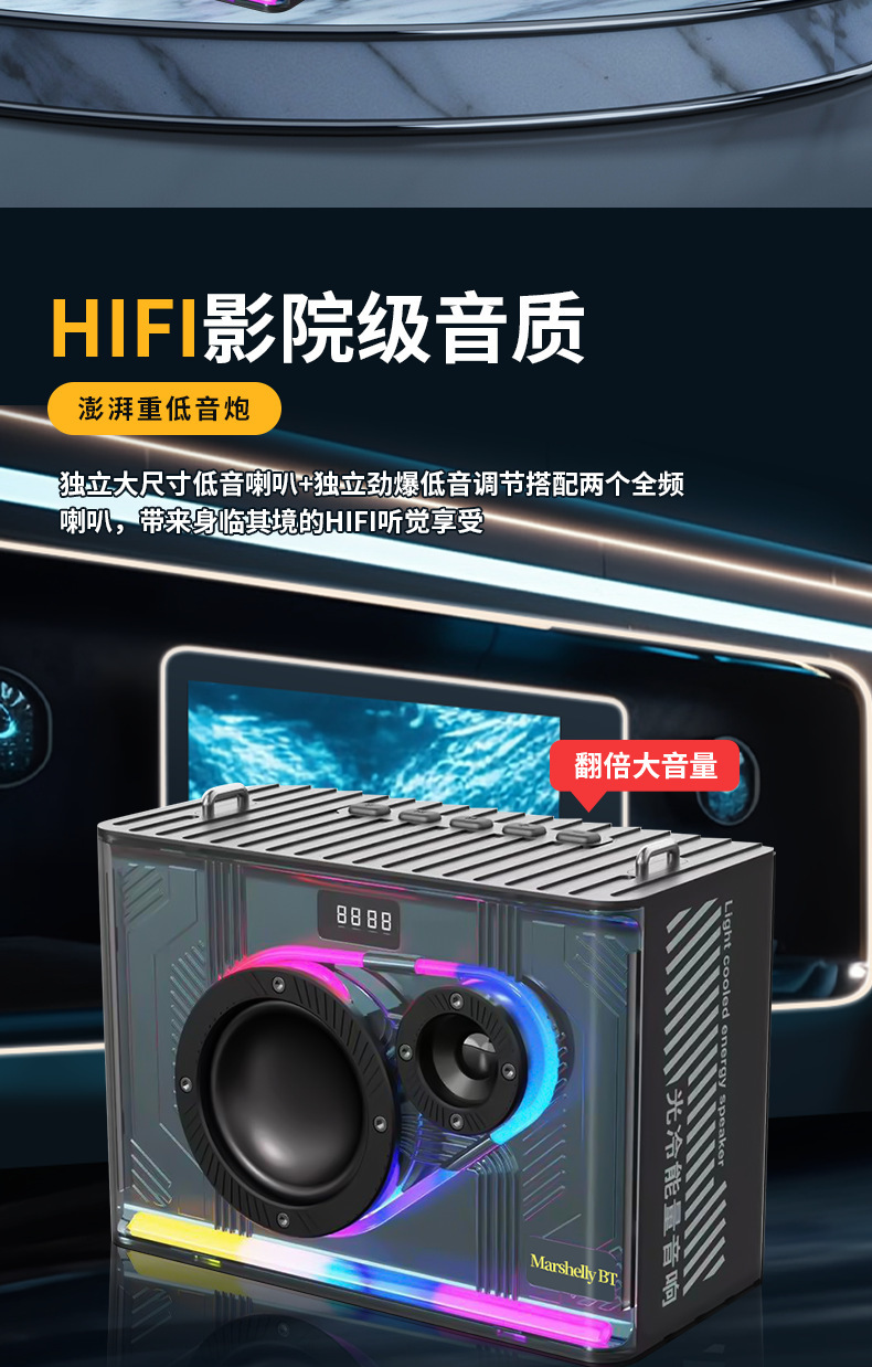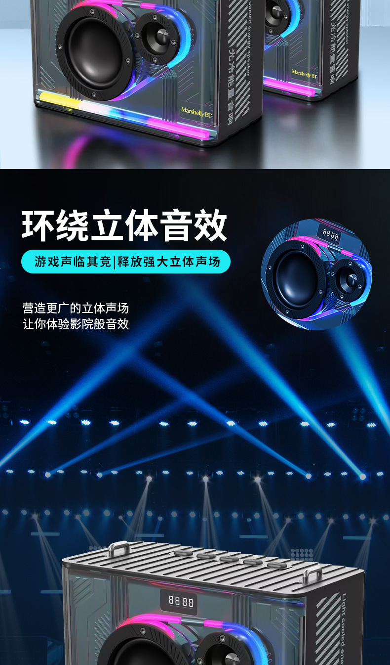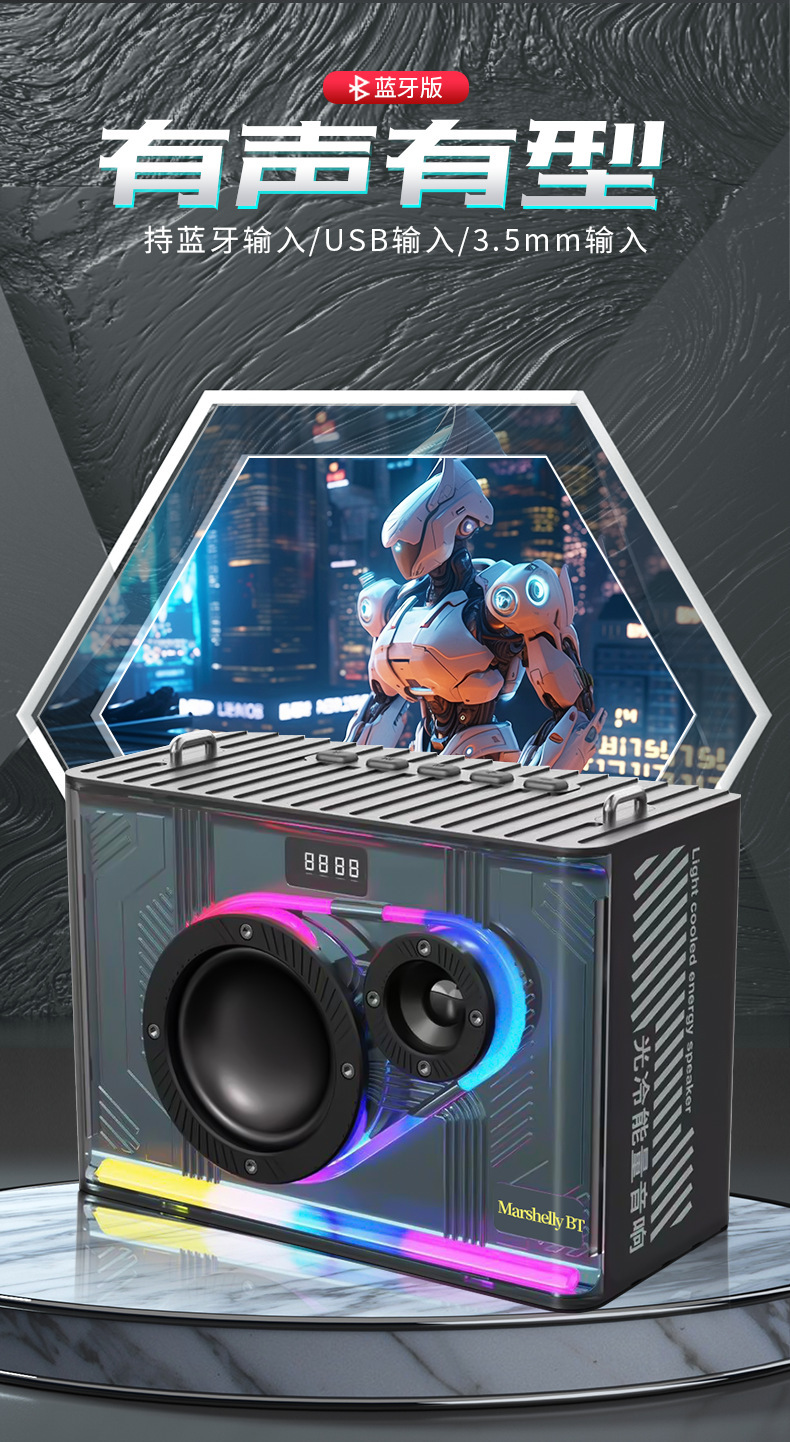 Manufacturer subwoofer cool LED portable home outdoor car audio transparent mecha wireless Bluetooth speaker