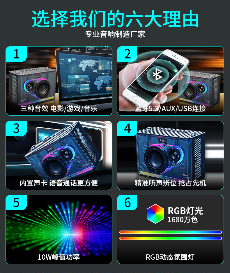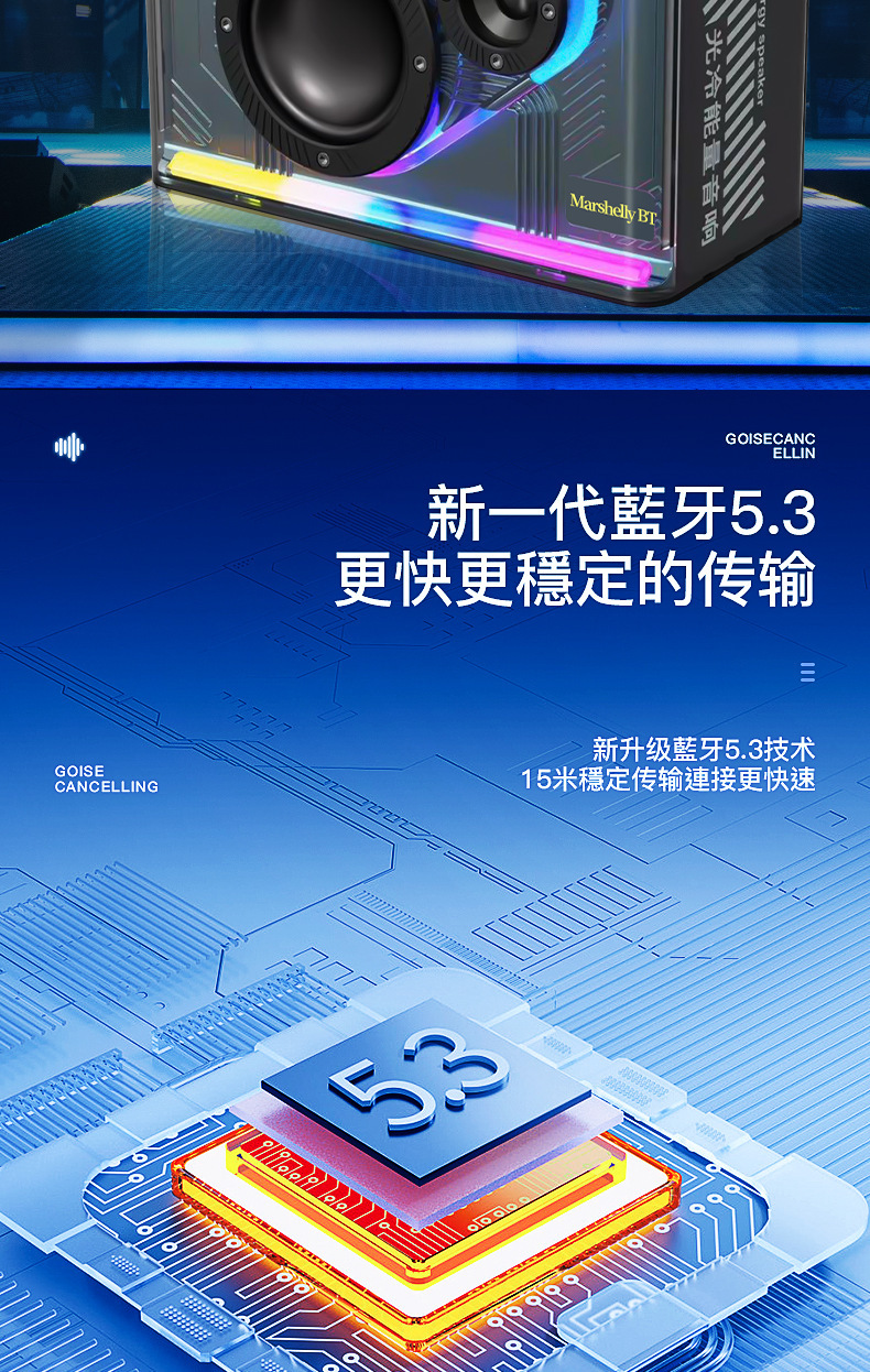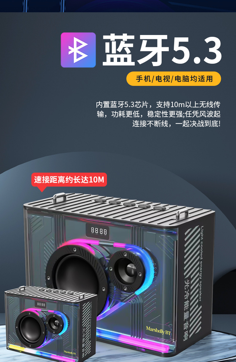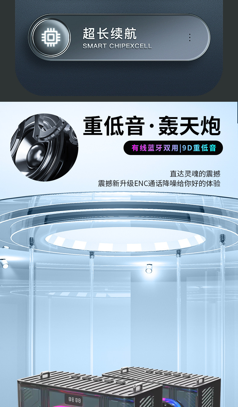 Manufacturer subwoofer cool LED portable home outdoor car audio transparent mecha wireless Bluetooth speaker