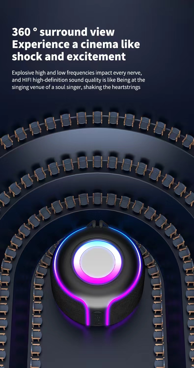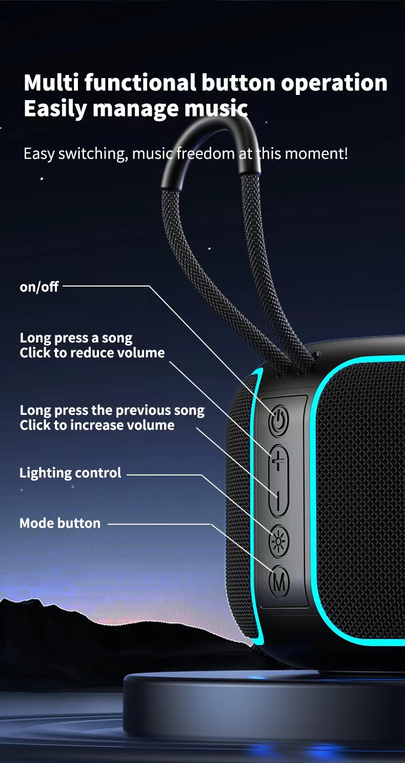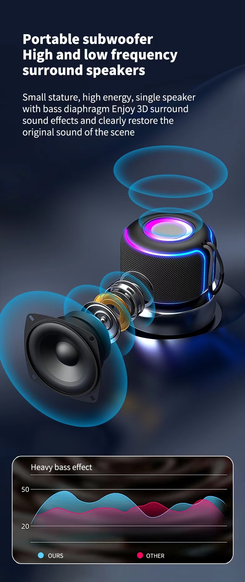 Hot selling RGB light mini wireless outdoor speaker fabric lanyard and plastic battery powered portable BT stereo subwoofer