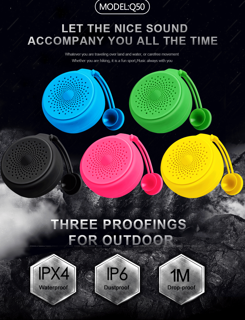 OEM/ODM Mini Wireless Speaker Outdoor Sports Bathroom Waterproof Speaker with Hanging Rope and Silicone Suction Cup